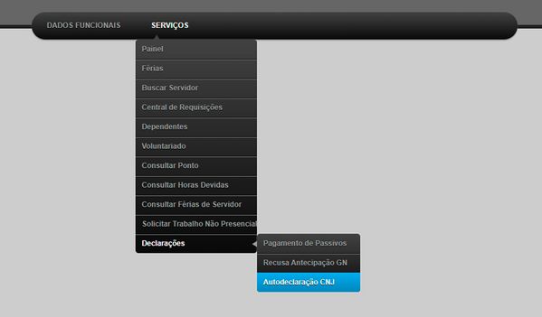 Acesse o Sistema e-GP: TRF3 - JFSP - JFMS , em seguida Serviços / Declarações / Autodeclaração CNJ