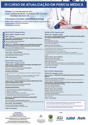 Público-alvo: magistrados, servidores, peritos judiciais e peritos do INSS