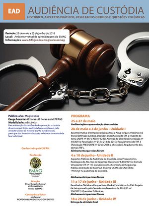 Aspectos Práticos da Audiência de Custódia. Atos Preparatórios. Realização do Ato. Uso de Algemas (Decreto nº 8.858/2016 e Súmula Vinculante STF nº 11). Convênio com a Secretaria de Segurança Pública do Estado de São Paulo. Sistema SISTAC do CNJ. Efeito "Priming" na audiência de Custódia.